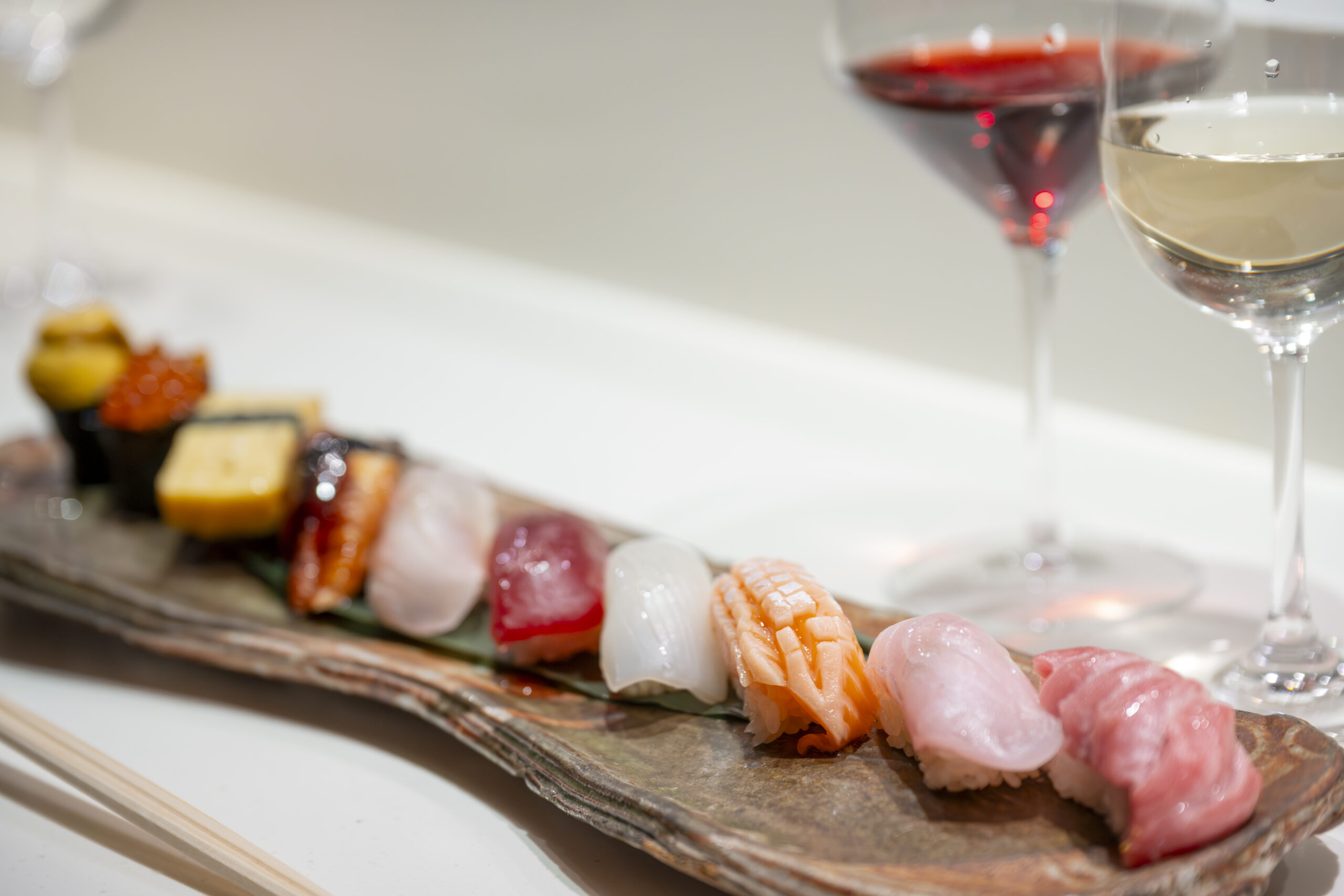 Our sommeliers recommend carefully selected wines at every table, and our sake list changes monthly with five new labels, offering fresh discoveries each visit.